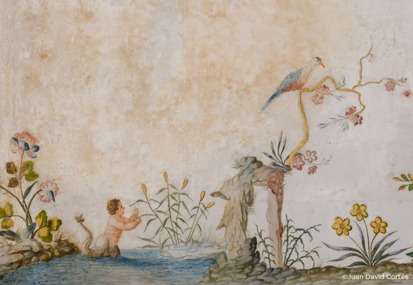 L’artista ha pres com a punt de partida l’observació dels elements decoratius del palau: les balustrades i els frescs, per a generar una instal·lació formada per una estructura suspesa que convida a submergir-s’hi i a deixar-se endur per formes suggerents que, com si es tractàs d’un reflex damunt l’aigua, emmirallen les decoracions originals del Casal.